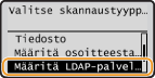 Jos toimistossasi on asennettuna LDAP-palvelin, voit myös määrittää palvelimeen tallennetut vastaanottajat. Kun haluat määrittää vastaanottajat, avaa LDAP-palvelin laitteen avulla ja valitse sitten vastaanottaja.