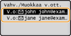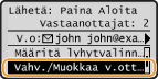 Jos haluat poistaa vastaanottajia helposti ja nopeasti näyttämättä vastaanottajaluetteloaEnnen kuin valitset <Vahvista/Muokkaa vastaanottaja> vaiheessa 1, voit selata määrittämiäsi vastaanottajia painamalla