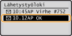 Kun <Näytä työloki> -asetuksena on <Ei>, et voi tarkistaa lähetettyjen asiakirjojen lokeja.