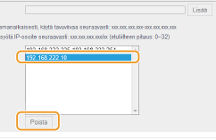 Valitse IP-osoite ja sitten [Poista]. ![]() |