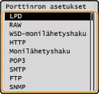 Valitse <TCP/IP-asetukset>  <Porttinron asetukset>.