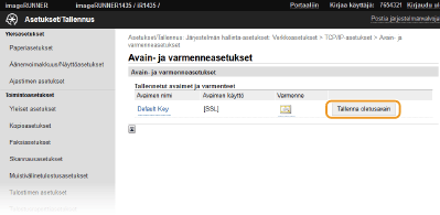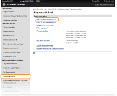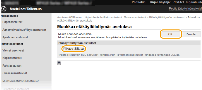 Käyttöpaneelin käyttäminenVoit ottaa TLS-salatun tiedonsiirron käyttöön tai poistaa sen käytöstä