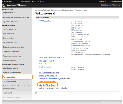 Valitse [Verkkoasetukset] [IEEE 802.1X -asetukset].