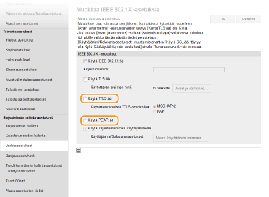 Valitse [Käytä TTLS:ää]- tai [Käytä PEAP:ää] -valintaruutu.