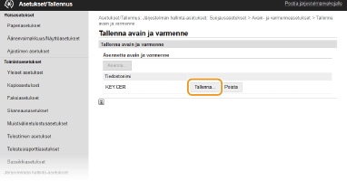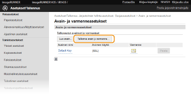 [Avain- ja varmenneasetukset] (avainpareille) tai [CA-varmenteen asetukset] (CA-varmenteille).
