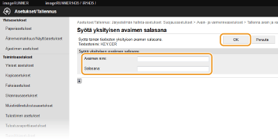 Syötä avainparin nimi ja salasana ja valitse [OK].