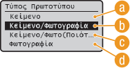 Μπορείτε να επιλέξετε την οπτική επεξεργασία της εικόνας του πρωτότυπου εγγράφου κατά την αντιγραφή ανάλογα με τον τύπο του, όπως έγγραφα μόνο με κείμενο, έγγραφα με διαγράμματα και γραφήματα ή φωτογραφίες περιοδικών.