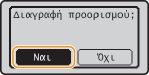 / για εναλλαγή των καθορισμένων προορισμών. Επιλέξτε έναν προορισμό που θέλετε να διαγράψετε <Ναι> . |