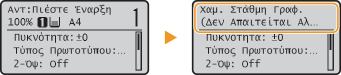 Το μήνυμα που εμφανίζεται εξαρτάται από την ποσότητα γραφίτη που απομένει. Ανάλογα με το μήνυμα που εμφανίζεται, θα πρέπει να βεβαιωθείτε ότι έχετε έτοιμη μια καινούργια κασέτα γραφίτη ή να αντικαταστήσετε την κασέτα γραφίτη.