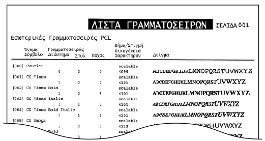 Μπορείτε να εκτυπώσετε μια λίστα για να ελέγξετε τις γραμματοσειρές που είναι διαθέσιμες σε κατάσταση PCL.