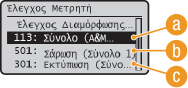 Επιλέξτε για να ελέγξετε τον συνολικό αριθμό όλων των σελίδων που αντιγράφτηκαν και εκτυπώθηκαν, συμπεριλαμβανομένων των εκτυπώσεων εισερχόμενων φαξ, αναφορών και λιστών.