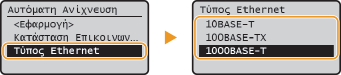 επιλέξτε <10BASE-T> , <100BASE-TX> ή <1000BASE-T> .![]() |