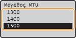 Στα περισσότερα δίκτυα Ethernet, το μέγιστο μέγεθος του πακέτου που μπορεί να αποσταλεί είναι 1500 byte. Το πακέτο αναφέρεται σε μια ποσότητα δεδομένων, στην οποία επιμερίζονται τα αρχικά δεδομένα προτού αποσταλούν. Η μονάδα μέγιστης μετάδοσης (MTU) ενδέχεται να διαφέρει σε κάθε δίκτυο. Αλλάξτε τις ρυθμίσεις της συσκευής όπως απαιτείται. Για περισσότερες πληροφορίες, επικοινωνήστε με τον Διαχειριστή Δικτύου.