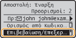 Εάν εμφανιστεί η οθόνη πιστοποίησης όταν ξεκινήσετε την αναζήτηση, εισάγετε το όνομα χρήστη και το συνθηματικό για τον διακομιστή LDAP, επιλέξτε <Εφαρμογή> και πατήστε . Μπορείτε να εισάγετε το όνομα χρήστη και τον κωδικό πρόσβασης της συσκευής ή τα δικά σας, ανάλογα με τη ρύθμιση (Αποθήκευση Διακομιστών LDAP). Εάν δεν είστε σίγουροι, επικοινωνήστε με τον διαχειριστή του δικτύου σας.