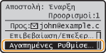 <Αγαπημένες Ρυθμίσεις> <Επεξεργασία/Διαγραφή> επιλέξτε τη ρύθμιση τροποποιήστε τη ρύθμιση <Εφαρμογή> <Ναι> . Δεν μπορείτε να αλλάξετε τους προορισμούς που είναι αποθηκευμένοι στη ρύθμιση με αυτήν τη διαδικασία. Αποθηκεύστε μια νέα ρύθμιση με τους επιθυμητούς προορισμούς.Εάν θέλετε να διαγράψετε μια αποθηκευμένη ρύθμιση, πατήστε
