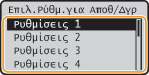 επιλέξτε τη ρύθμιση που θέλετε να ανακαλέσετε