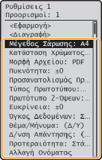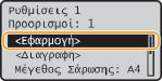 <Αγαπημένες Ρυθμίσεις> <Επεξεργασία/Διαγραφή> επιλέξτε τη ρύθμιση <Διαγραφή> <Ναι> .Οι αποθηκευμένες ρυθμίσεις διατηρούνται ακόμη κι όταν η συσκευή τίθεται εκτός λειτουργίας.