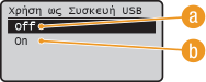 Ενεργοποιεί τη χρήση της θύρας USB για σύνδεση με υπολογιστή.