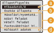 Másolási/nyomtatási/küldési/fogadási feladatok állapota