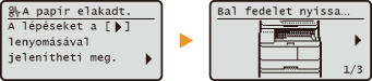 Amikor hiba lép fel, bizonyos esetekben a hiba elhárítására vonatkozó útmutatás jelenik meg a kijelzőn. A probléma megoldásához kövesse a kijelzőn látható utasításokat. Az alábbi ábrán például a papírelakadáskor megjelenő képernyő látható (