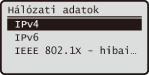 Megjeleníti a hálózati beállításokat, például a készülék IP-címét.