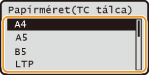 A / gombokkal válassza ki a papírméretet, majd nyomja meg az gombot.