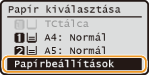 Amikor megjelenik az alábbi <Papír kiválasztása> képernyő, a / gombokkal válassza ki <Papírbeállítások> lehetőséget és nyomja meg az gombot.