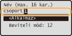 A számbillentyűkkel adja meg a csoport nevét, válassza ki az <Alkalmaz> pontot és nyomja meg az