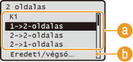 A <2 oldalas> funkció nem érhető el az <Azonosítókártya-másolás> funkció használata esetén.