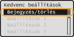 <Kedvenc beállítások> <Bejegyzés/törlés> gombot válassza ki a beállítást <Törlés> <Igen> .A bejegyzett beállítások a készülék kikapcsolása esetén is megmaradnak.