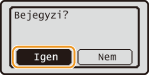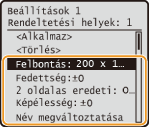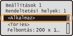 <Kedvenc beállítások> <Bejegyzés/törlés> gombot válassza ki a beállítást szerkessze a beállítást <Alkalmaz> <Igen> . Ezzel a módszerrel nem módosíthatja a beállításban tárolt rendeltetési helyeket. Jegyezzen be új beállítást a kívánt rendeltetési helyekkel.Ha törölné a bejegyzett beállításokat, nyomja le a