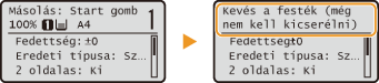 <Kevés>: A festék kifogyóban van. Gondoskodjon csere festékkazettáról.