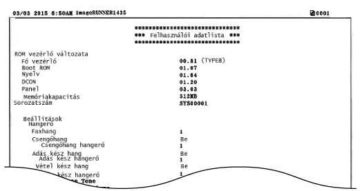 Ebben a listában nincsenek benne a <Hálózati beállítások> és a <Rendszerkezelő beállítások> adatai. Az összes beállítási tétel ellenőrzéséhez nyomtassa a Rendszerkezelő adatok listáját.