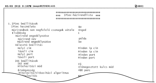 Listát nyomtathat a házirend nevek és a készülék érvényben lévő IPSec beállításainak ellenőrzéséhez.