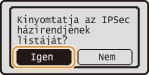 Válassza ki az <Igen> lehetőséget, és nyomja meg az