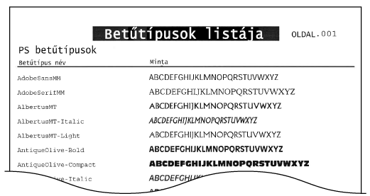 A PS módban használható betűtípusok listáját ellenőrzésre kinyomtathatja.