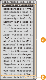 A <Hálózati beállítások> a következőképpen is alaphelyzetbe állíthatók: nyomja meg a