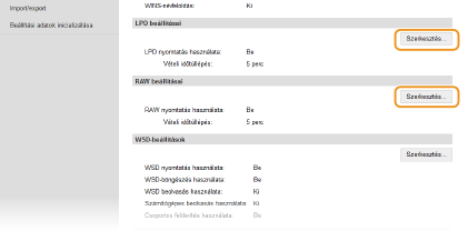 A kezelőpanel használatávalAz LPD-, RAW- és WSD-beállítások a