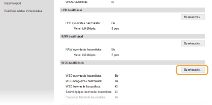 A jelölőnégyzet bejelölésével a WSD-n keresztül információkat kérhet le a készülékről a számítógépre. Ez a jelölőnégyzet automatikusan be van jelölve, ha a [WSD nyomtatás használata] jelölőnégyzet be van jelölve. [WSD beolvasás használata]