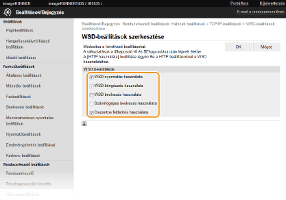 WSD-n keresztüli nyomtatáshoz jelölje be ezt a jelölőnégyzetet. Ha nem használ WSD-nyomtatást, akkor törölje a jelet a jelölőnégyzetből. [WSD-böngészés használata]
