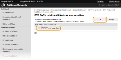 Kattintson a [Szerkesztés...] lehetőségre az [FTP PASV mód beállításai] mezőben.
