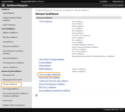 A készülék az LDAPv3 protokollal kommunikál az LDAP-kiszolgálókkal.