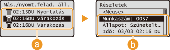gombot.![]() <Más./nyomt.felad. áll.>Megjeleníti a feldolgozás, másolás alatt lévő, illetve feldolgozásra váró dokumentumok listáját.