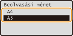 (Beolvasási méret) lenyomásával is megadhatja a beolvasási méretet, a <Beolvasási méret> alábbi leírás szerinti választása helyett. |