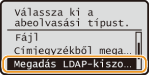 A / gombokkal válassza ki a <Megadás LDAP-kiszolgálóról> lehetőséget, és nyomja meg az gombot.