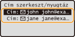 Ha például a számgombokkal már megadott egy rendeltetési helyet, akkor az LDAP-kiszolgáló segítségével legfeljebb kilenc további rendeltetési helyet adhat meg.