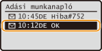 Ha a <Munkanapló megjelenít.> beállítás értéke <Ki>, akkor az elküldött dokumentumok naplói nem tekinthetők meg.