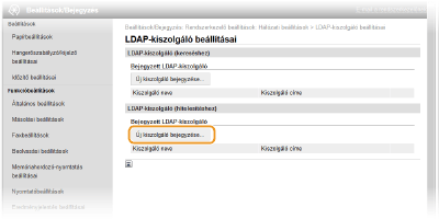 Kattintson a [Új kiszolgáló bejegyzése...] lehetőségre a [LDAP-kiszolgáló (hitelesítéshez)] mezőben.