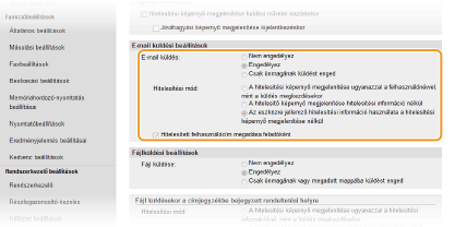 Megakadályozza, hogy a felhasználók e-mailt küldjenek a készülékről.