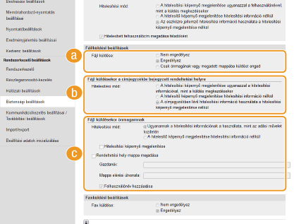 Adja meg a rendeltetési mappa elérési útját. A mappa neve a felhasználónak a [Felhasználónév hozzáadása:] beállítással hozzáadott nevével együtt legfeljebb 120 karakterből állhat.